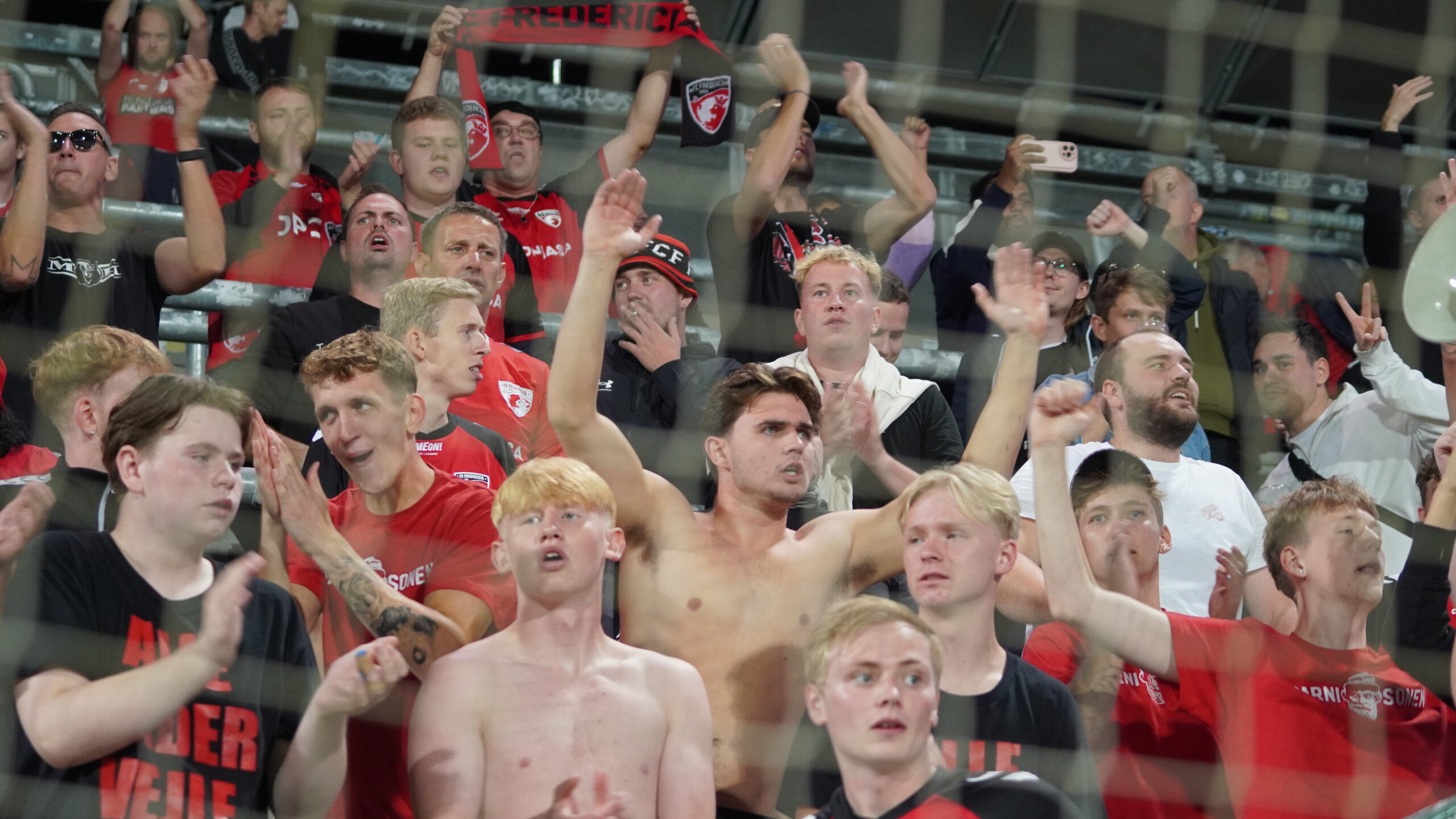 Man kunne tro, at det ville punktere gæsternes moral. Men bare seks minutter senere slog Agon Muçolli til. Fredericia-profilen viste individuel klasse i feltet, tog et hurtigt træk og hamrede bolden i kassen til 2-1. En scoring, der satte ild under kampen og tændte opbakningen fra de mange medrejsende Fredericia-fans.