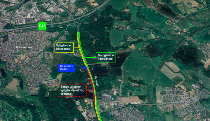 Fra 15. april til 15. maj bliver en del af motortrafikvejen gravet op, når der skal lægges fjernvarmerør i jorden på strækningen mellem rastepladsen på Fynsvej og frem til 200-300 meter nord for krydset ved Nørre Bjertvej – se kort.