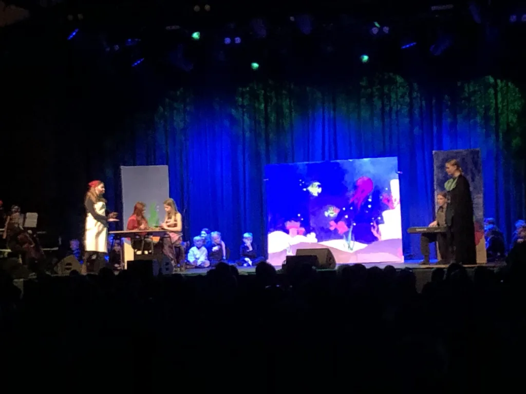 Efter forestillingen tog jeg mig tid til at betragte genforeningen af familierne. De voksne fandt igen deres egen lille skat. Rørende var det, da en ikke helt afsminket elev fik en krammer med et ”Hold kæft, hvor var du sej!”. Trods anerkendelsen løftede låget sig på skatten og ud sprang tårer! Nu blev det ophobede forventningspres og spænding udløst. Jeg fornemmede, at han følte, at alt i hans øjne ikke havde været helt korrekt. Ikke noget nogen som helst blandt publikum havde bemærket. Alligevel trængte følelserne sig på hos den ambitiøse elev.