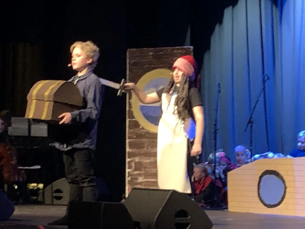 Det levende elevorkester akkompagnerede os alle igennem musicalen med koncentration og præcision. Der blev leveret musik til 15 numre, der næsten alle lugtede lidt af saltvand. Fra bl.a. ”Skibet skal sejle i nat”, ”Jutlandia”, ”I am sailing”, ”Highway to hell” til ”Alle sømænd er glade for piger”. Ind imellem hørtes også Niels Viggo Bentzons simple, men geniale treklange D/Eb/Bb (udtales D-S-B).