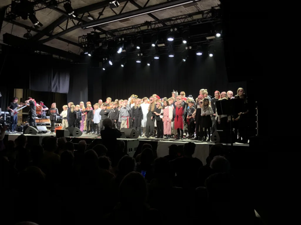Sådan var forældre, bedste- og oldeforældre begejstrede efter musicalen SKATER-ØEN, som Fredericia Friskole fremførte i Eksercerhuset på årets første forårsdag. Over 150 dygtige elever kunne efter to ugers arbejde kulminerende med en veloverstået forestilling modtage velfortjent anerkendelse og gå glade hjem.