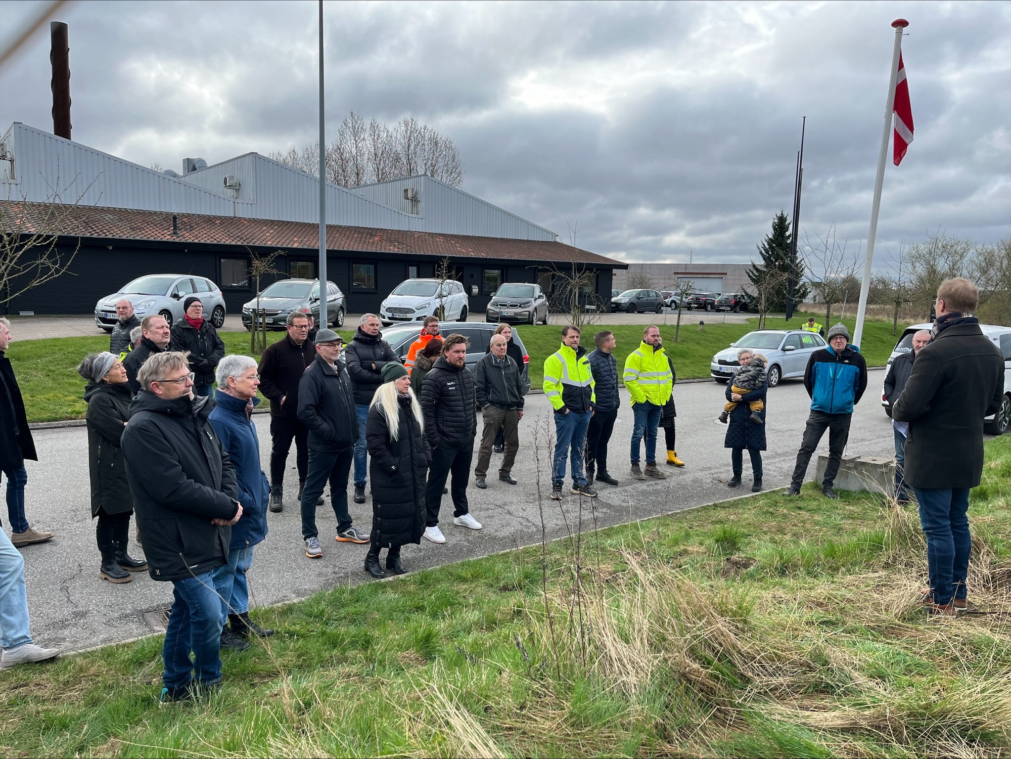 Mange var mødt frem, da borgmester Johannes Lundsfryd Jensen og formand for Klima-, Natur og Genbrugsudvalget Jacob Nielsen tog de første spadestik til en ny genbrugsplads på Fabriksvej i Ejby.