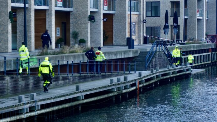 TrekantBrand, en ambulance, en patrulje og politiets indsatsleder blev kaldt til stedet og afspærrede området fra ‘kajens kant’ og ned til hjørnet, hvor East Coast Surfers ligger.