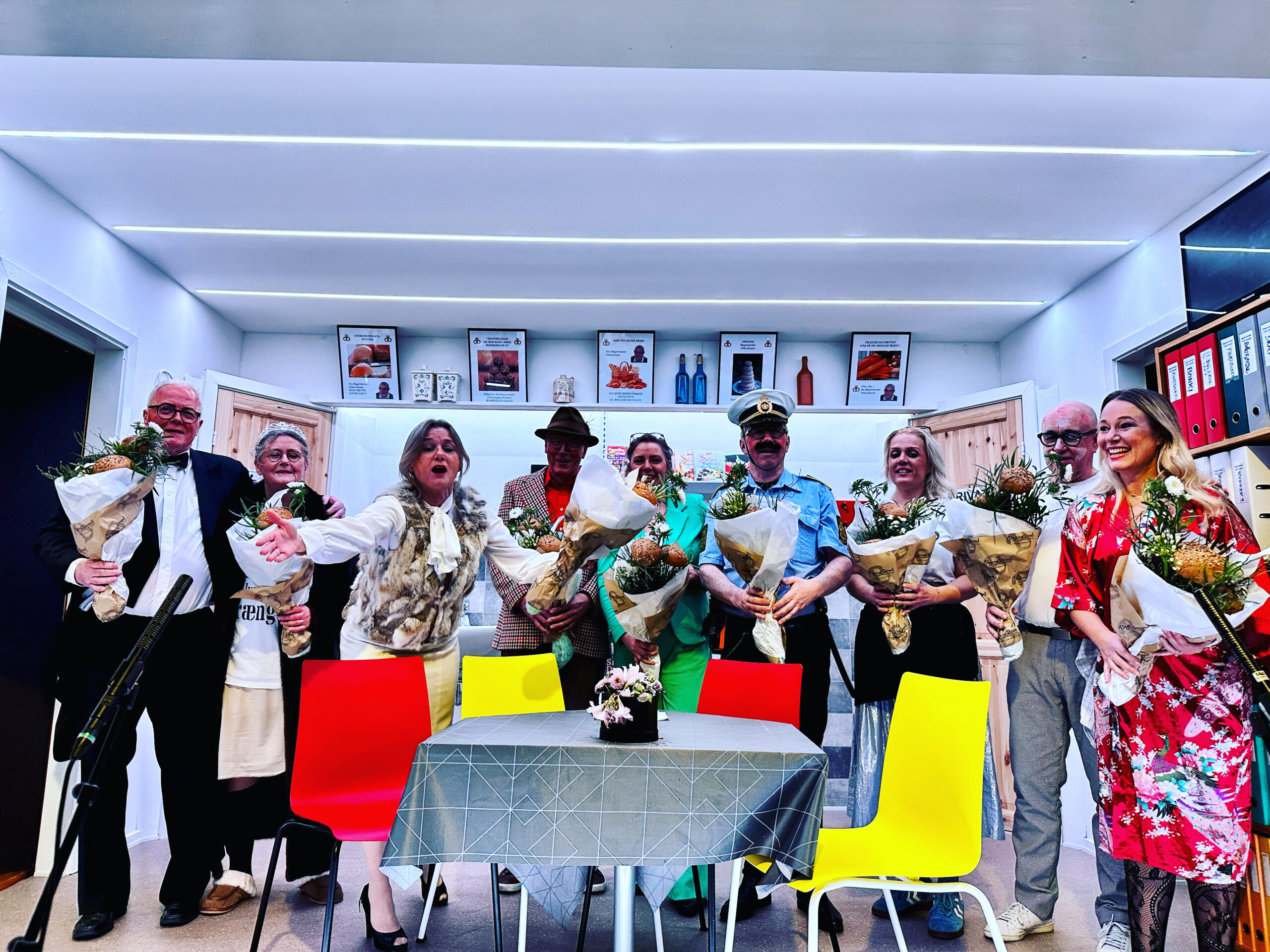 Erritsø Dilettanternes fortolkning byder på latter, forviklinger, og en påmindelse om, at i et lille samfund, er der altid noget at grine af – især når fremtiden for en elsket bodega står på spil!
