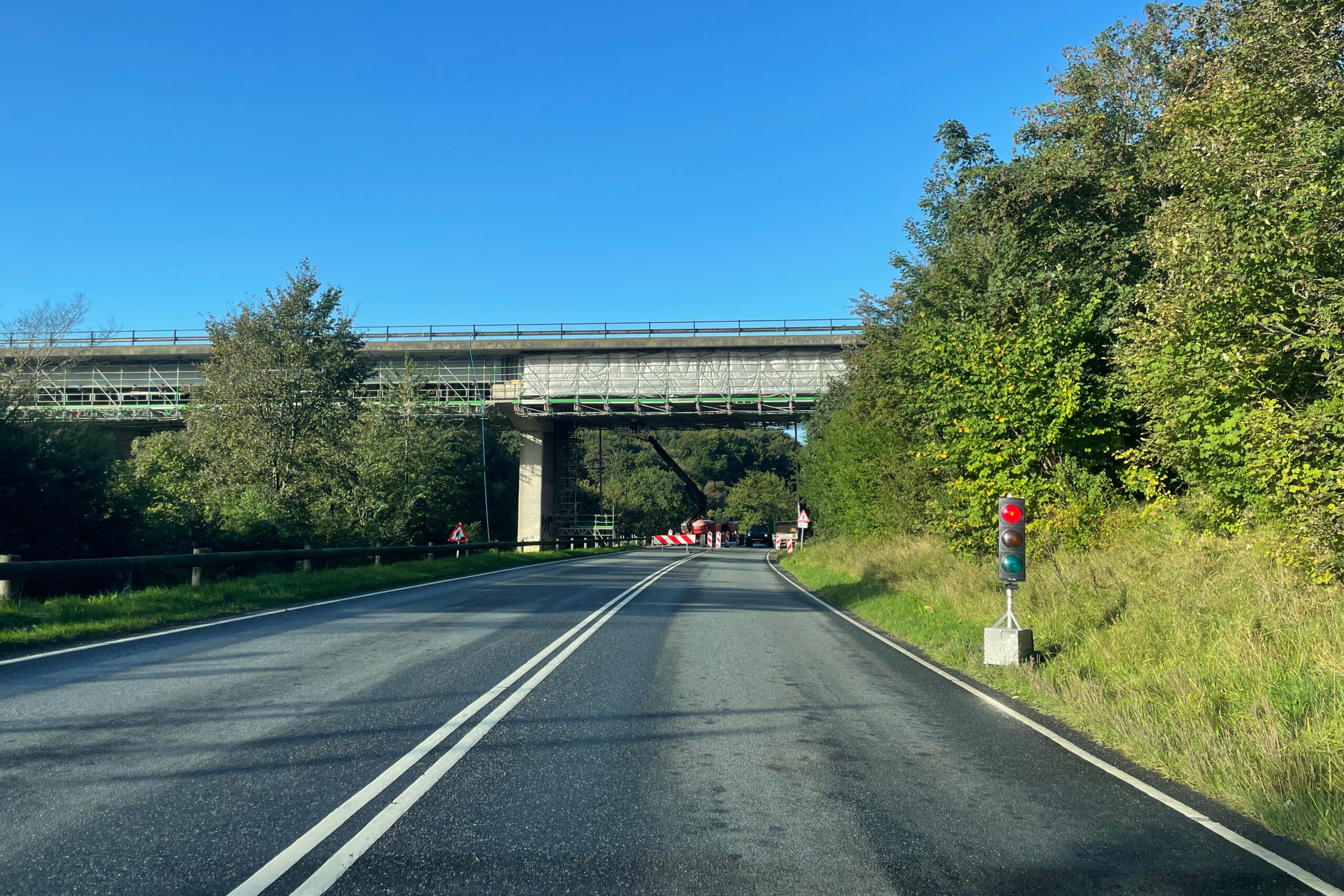For trafikanterne på motorvejen/broen forventes arbejdet ikke at have indflydelse på trafikken. Trafikanterne på Hylkedalvej under broen vil til gengæld periodevis opleve, at et spor vil blive spærret, og at trafikken dirigeres via lyssignal forbi arbejdsområdet.
