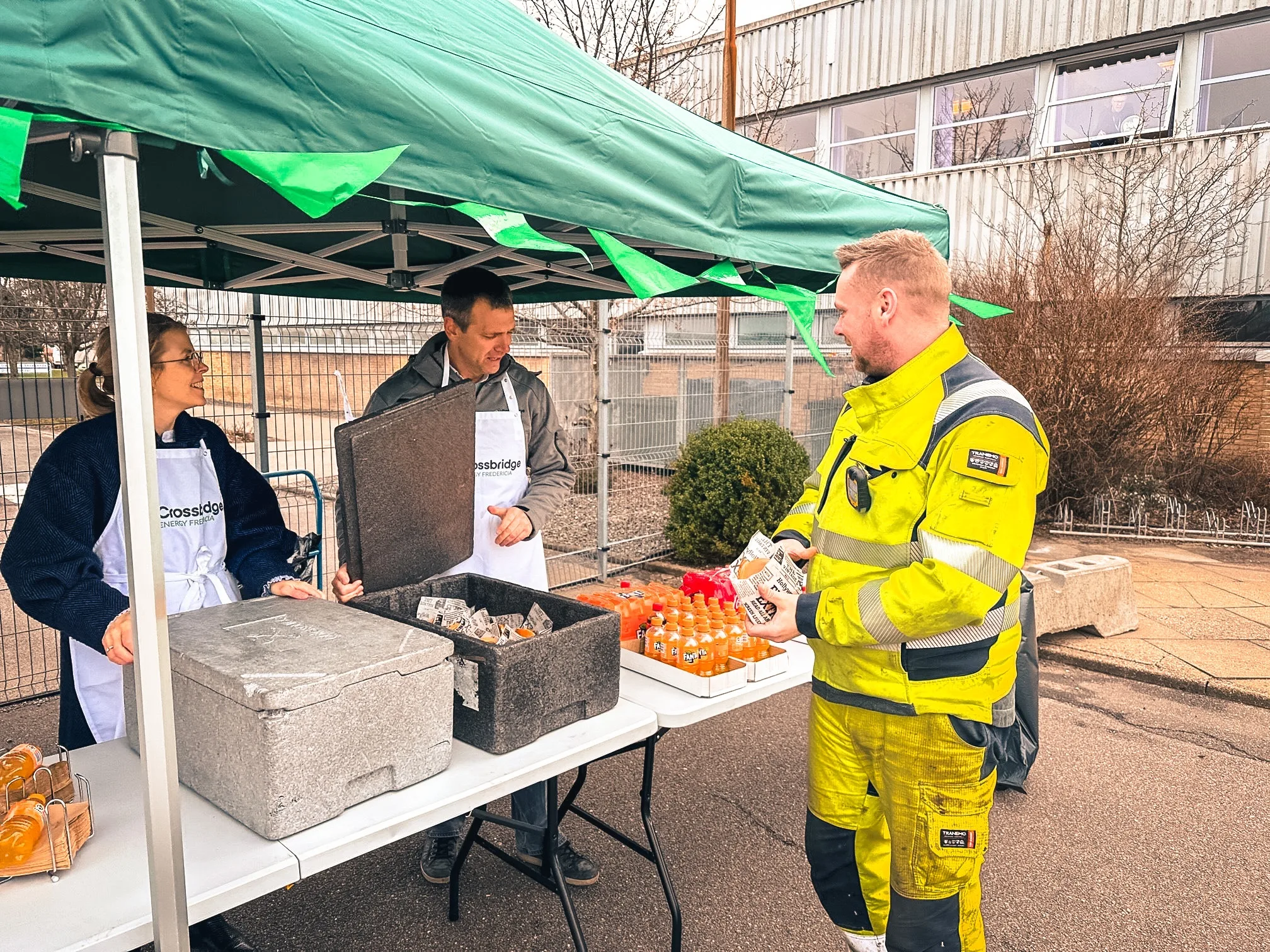 Som en ekstra tak til ansatte og kontraktører på hele sitet for alt det ihærdige arbejde med genopbygningen, havde ledelsesteamet og frivillige hænder forleden taget forklæder på og trakteret med mere end 500 ribbensstegssandwiches. CEO Finn Schousboe var også at finde bag disken, så han personligt kunne kvittere for den enorme indsats, der blev gjort.