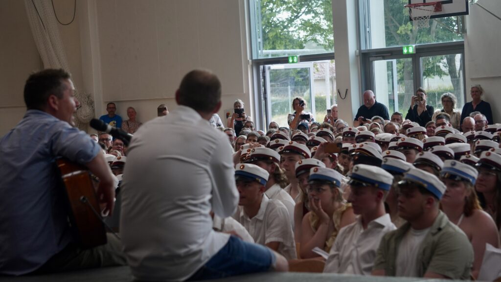 Efter denne mindeværdige optræden trådte lærerstaben frem på scenen. I et hjertevarmt og sentimentalt øjeblik, sang de en farvelsang til deres elever. Sangen, en smuk hyldest til studenterne og deres rejse, udløste en blanding af jubel og emotionelle tårer.