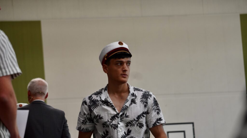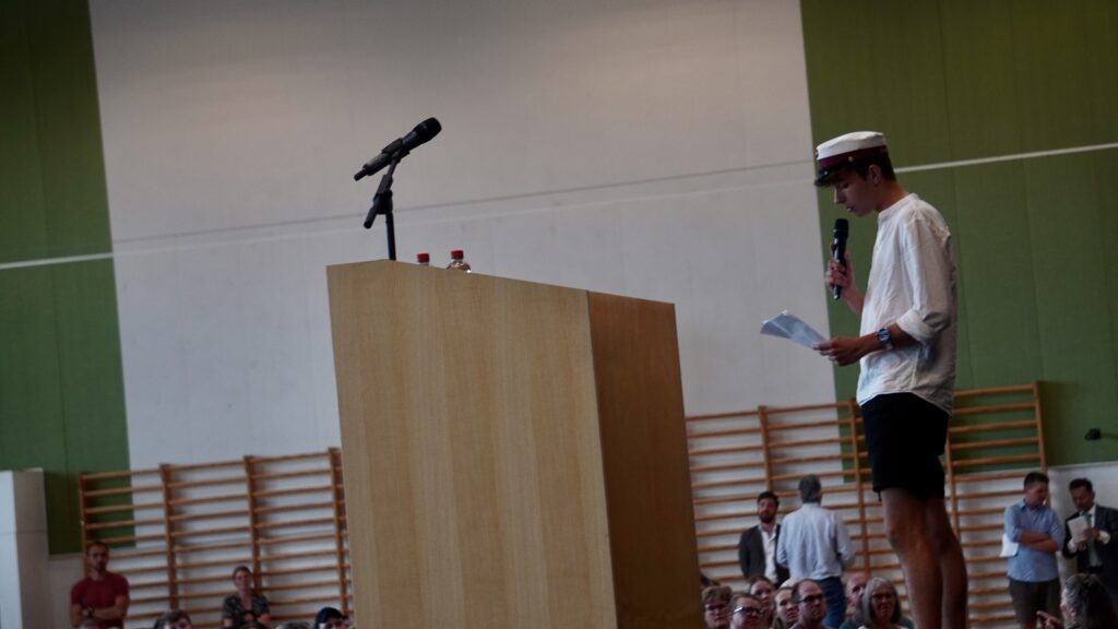 Gustav Risager Gerdes fra 3.I holdt en tale på vegne af eleverne. Han påpegede gymnasiet’s betydning og værdier: