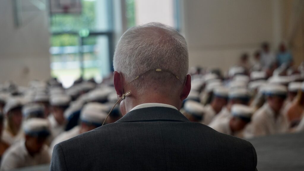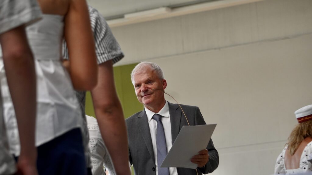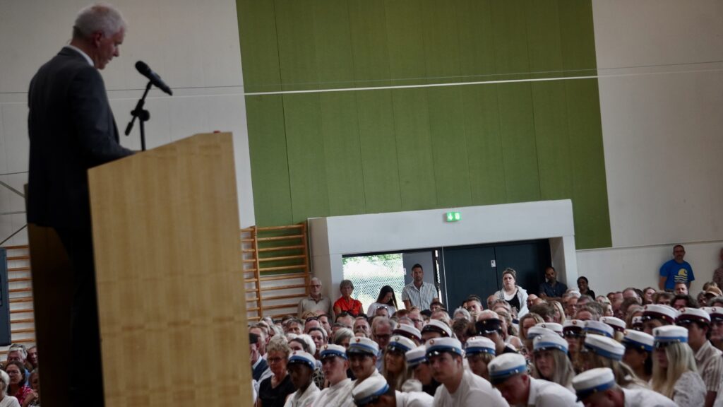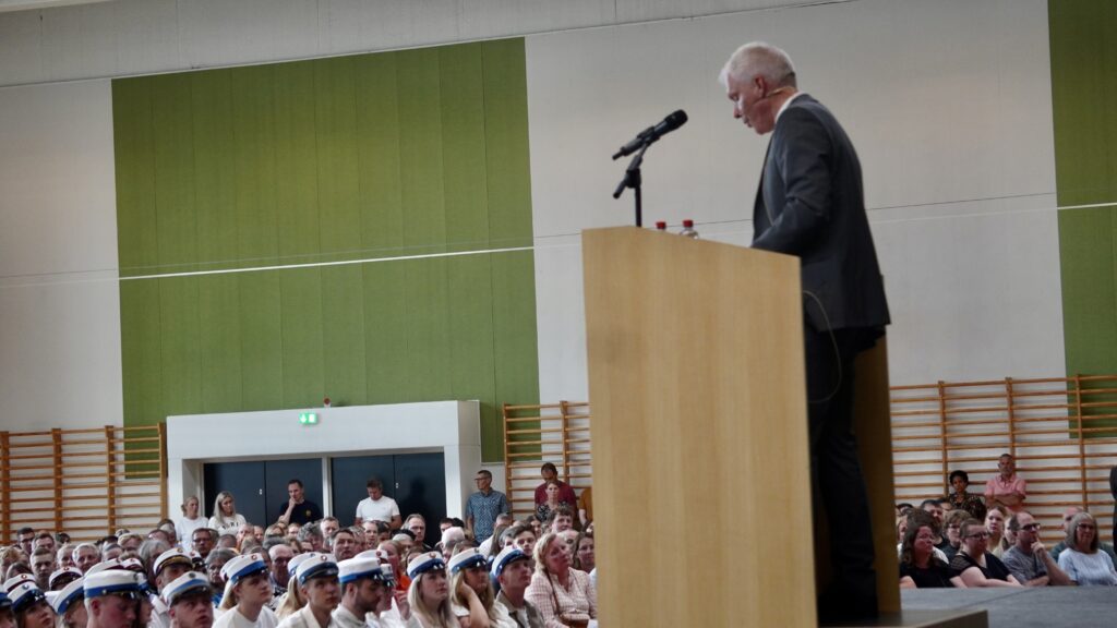 Det var en særlig dag for rektor Jørgen Lassen, da det var hans første dimission på skolen. Under sin tale delte han sine refleksioner om skolens historie, udfordringer og stoltheder.