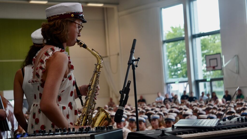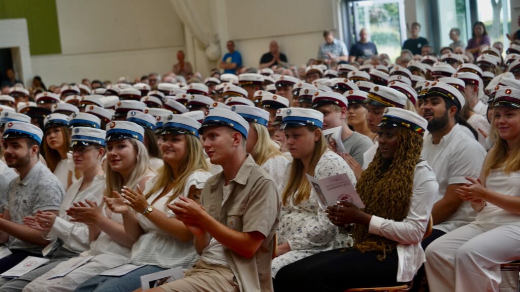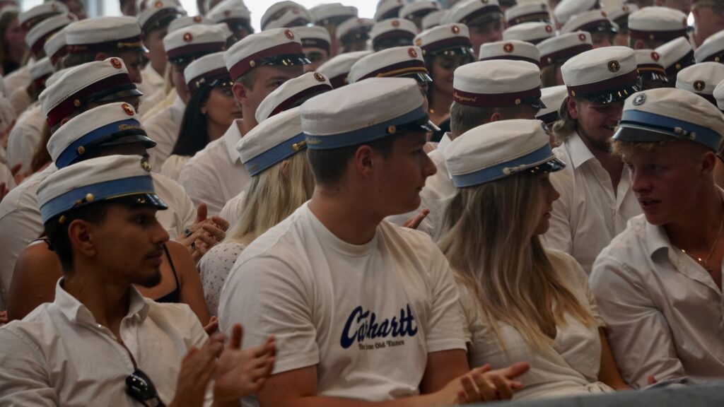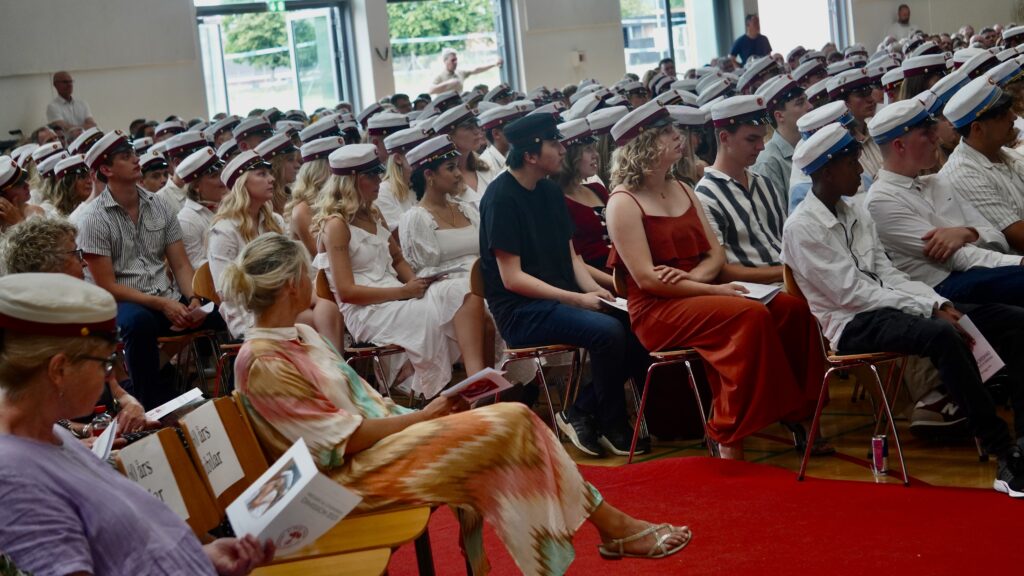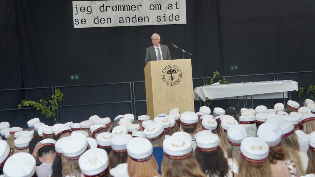 Torsdag eftermiddag, den 22. juni, vibrerede Fredericia Gymnasium med en stemning af jubel og vemod, da studenterne fra STX og HF skulle have deres eksamensbeviser. Hallen var tætpakket med 1.200 stole, alle optaget af studerende, familie, venner og gamle elever, der vendte tilbage for at fejre deres jubilæum.