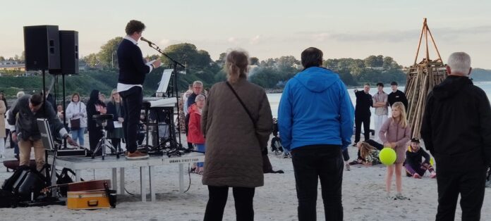Efter båltalen var der fællessang, hvor Thomas Bay satte sig ved klaveret og spillede til Midsommervisen. De besøgende sang med og skabte en rigtig sommer atmosfære af fællesskab og glæde.