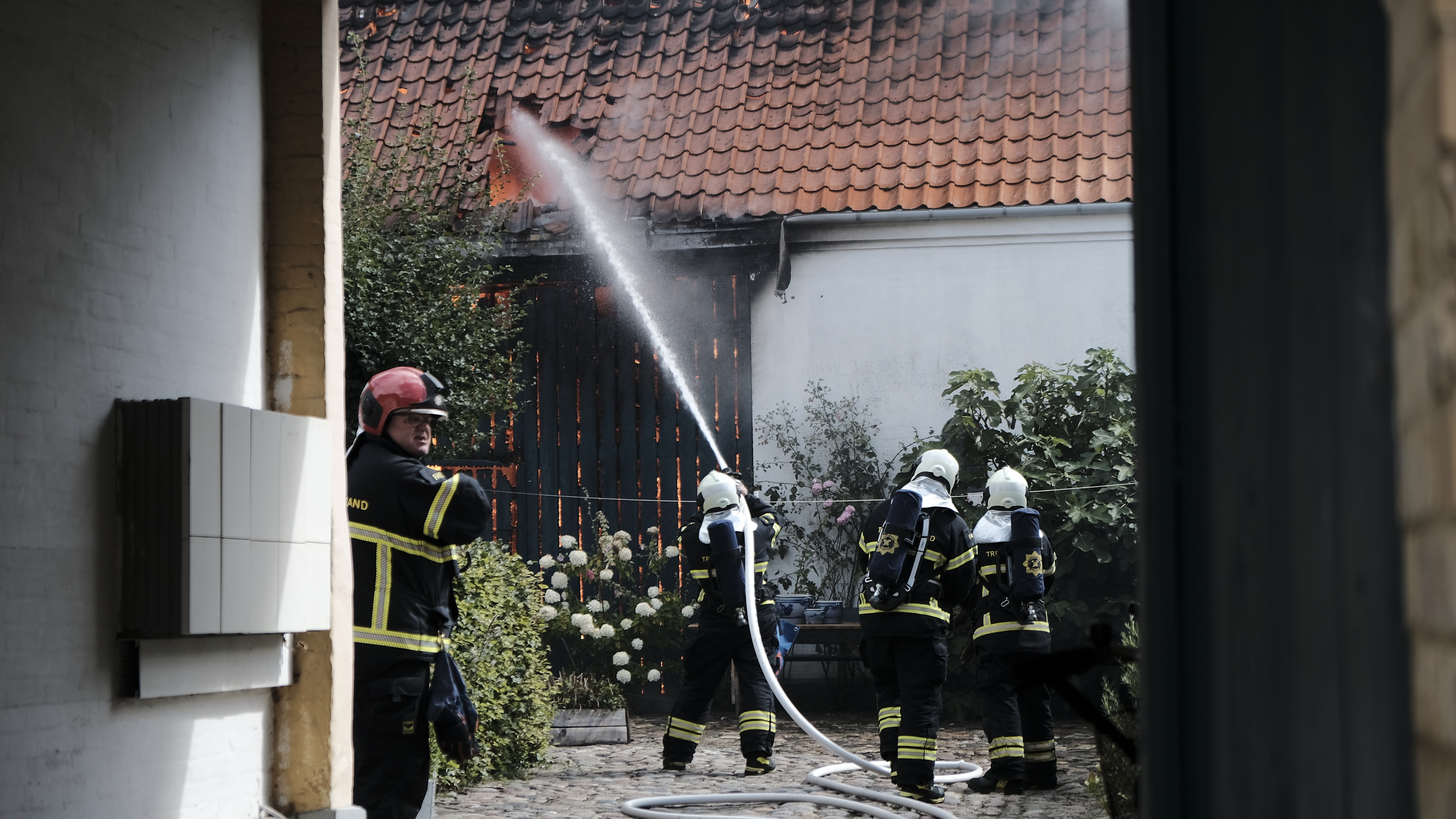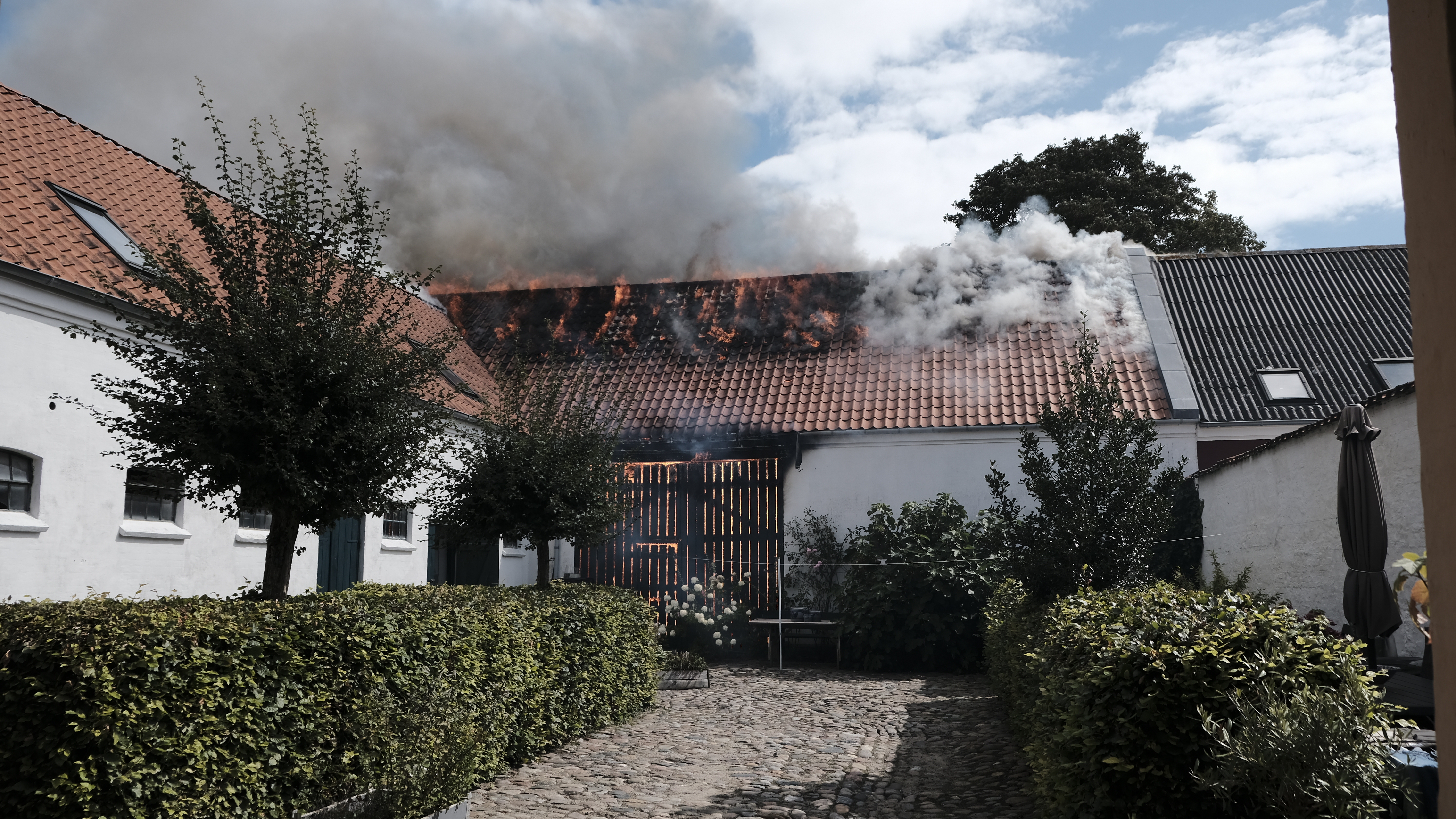 13.46: Branden er under kontrol. Det fortæller Sydøstjyllands Politi. Der er ingen personer eller dyr i bygninger. Slukningsarbejdet vil fortsætte længe endnu, men branden er som skrevet under kontrol.