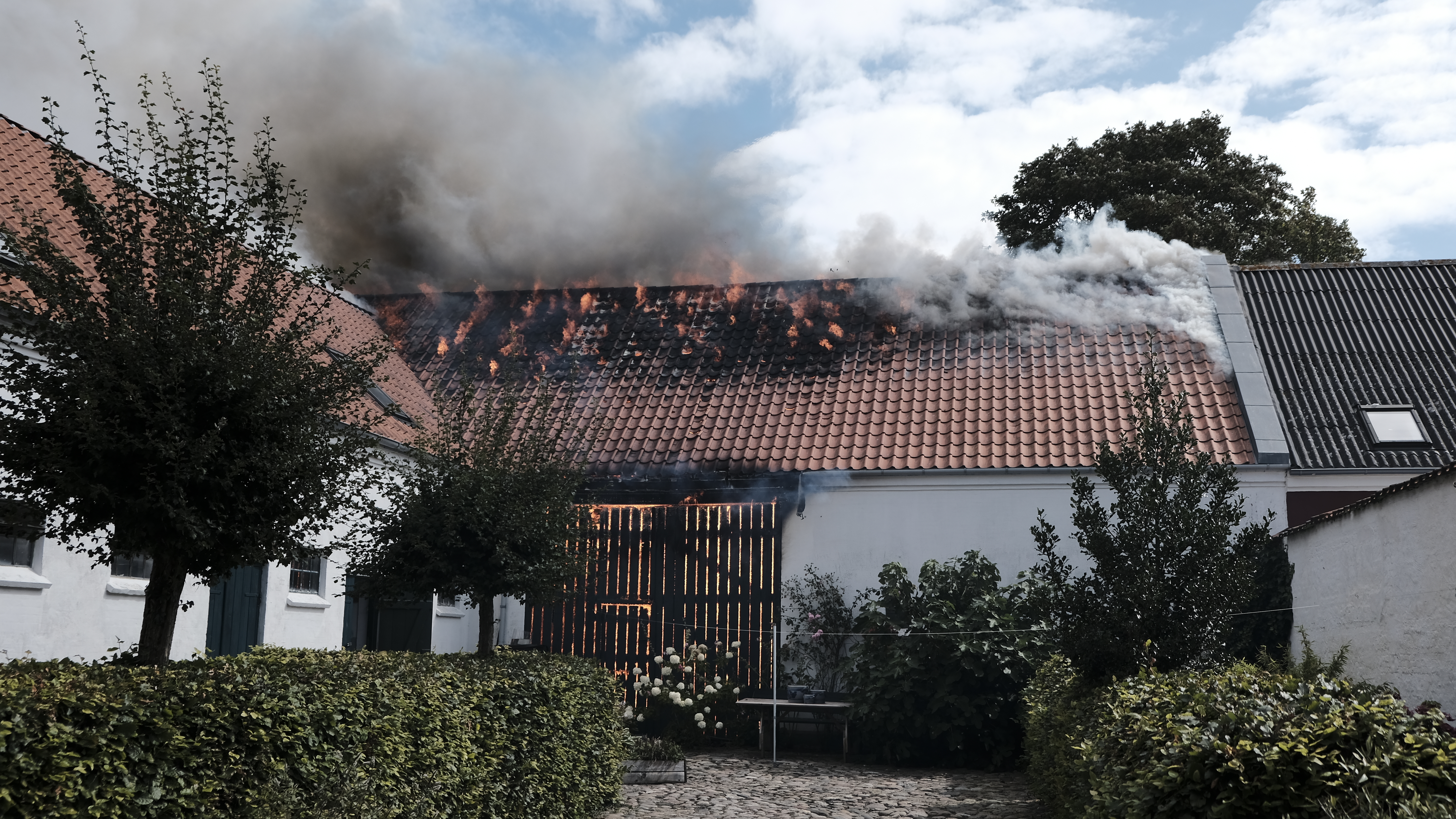 12.59: TrekantBrand sender en drone i luften. Opdatering også fra politiet: Der er ingen lejere hjemme.
