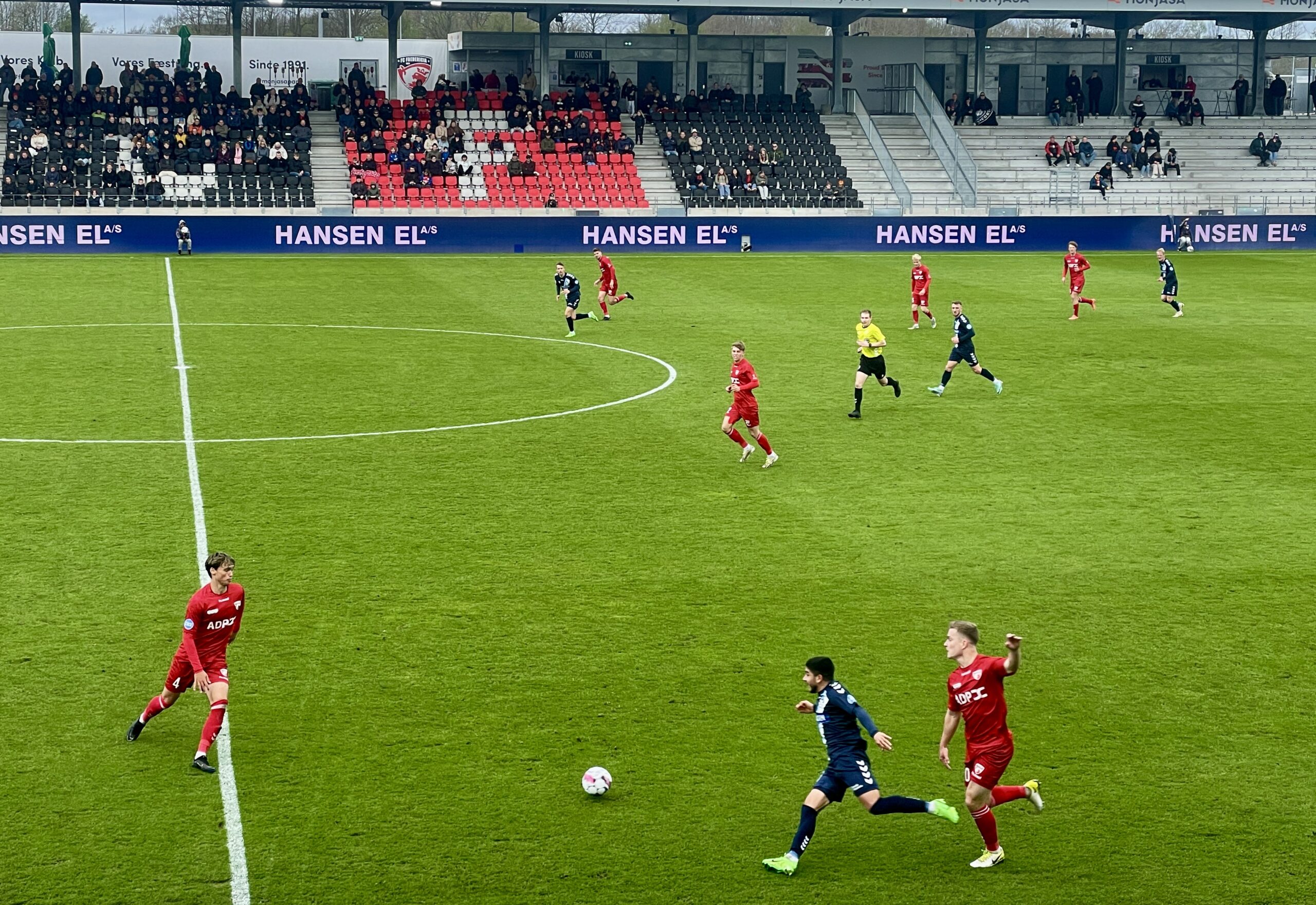 Sønderjyske har sikker kurs mod Superligaen, mens FC Fredericia kæmper for at blive “best of the rest”. Med det udgangspunkt gik de to hold ind til kampen på et vindblæst Monjasa Park, hvor 746 tilskuere så til fra lægterne.