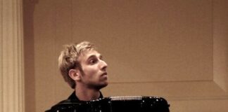 Koncert på gymnasiet med accordeonspilleren Bjarke Mogensen
