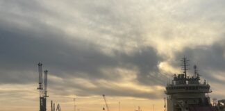 Usædvanligt syn på Fredericia Havn: Skib løfter forreste del for at...