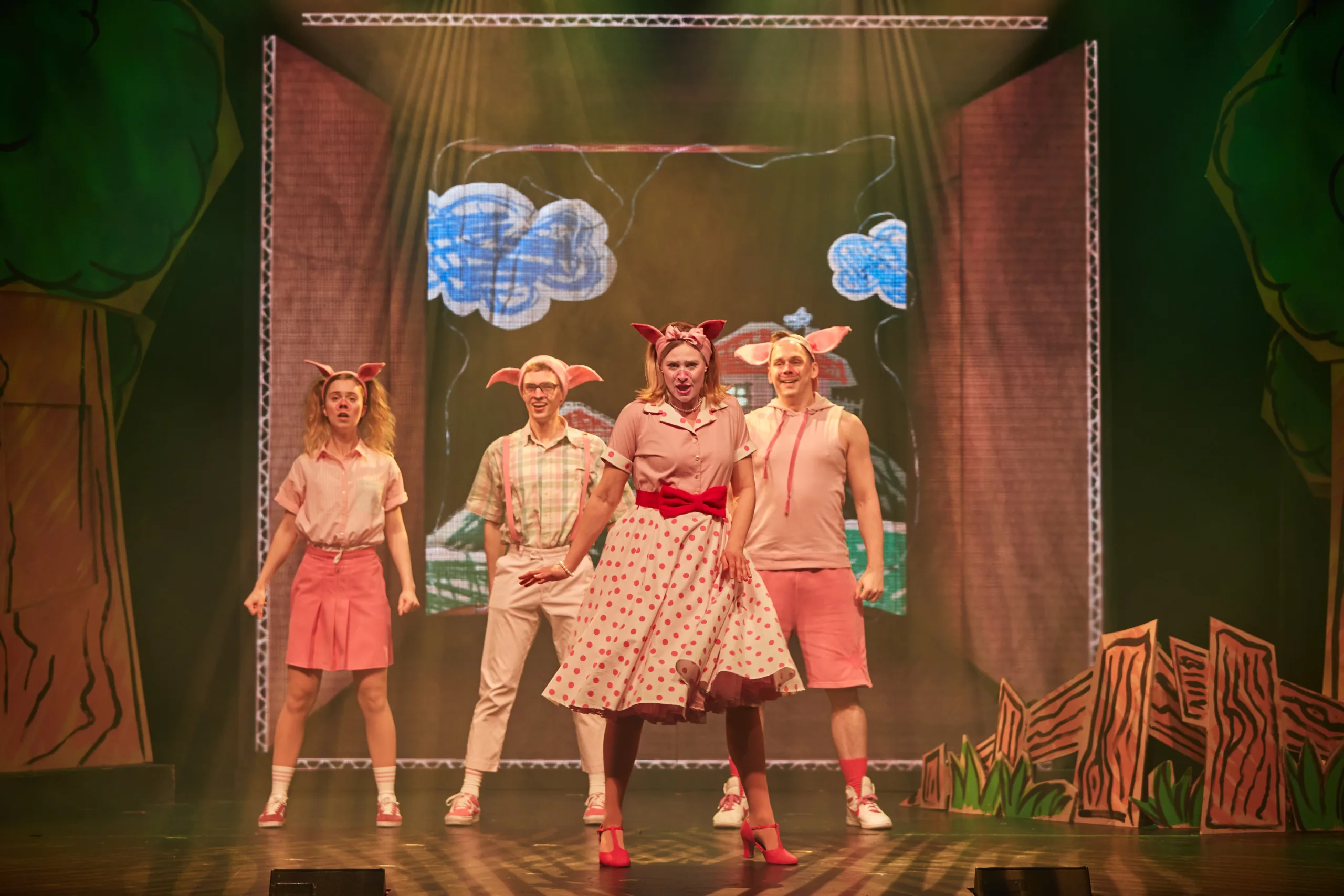 I vinterferien viser Fredericia Musicalteater familiemusicalen DE TRE SMÅ GRISE. Det er den musikalske udgave af eventyret om de tre små grisebasser Schwein, Nee og Stig, deres Mor og Den store stygge ulv.