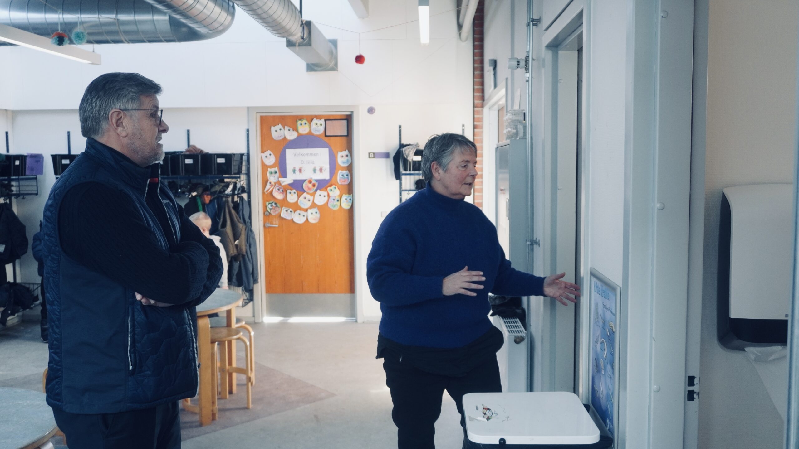 På matriklen, der tidligere var kendt som Lyng Skole, tog hun en tur rundt med udvalgsformand Ole Steen Hansen (A), hvor de kiggede nærmere på renoveringer, der kommer, og allerede tæt på hovedindgangen, hvor Lisa har kontor, sker en af de første ting. I alt skal der renoveres 15 toiletter på skolen, og et par stykker af dem er tæt på hovedindgangen. Længere nede er der et stort rum, hvor der er garderobe ude i siderne og mulighed for leg. Der er der et gulvtæppe, og i enkelte lokaler viser Lisa Mikkelsen, at der er gulvtæpper, der har aftjent deres værnepligt, og det har derfor været et ønske at få lavet en udskiftning på den front. Både i forhold til modernisering, men også i forhold til indeklimaet.