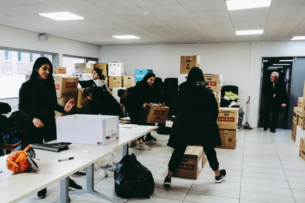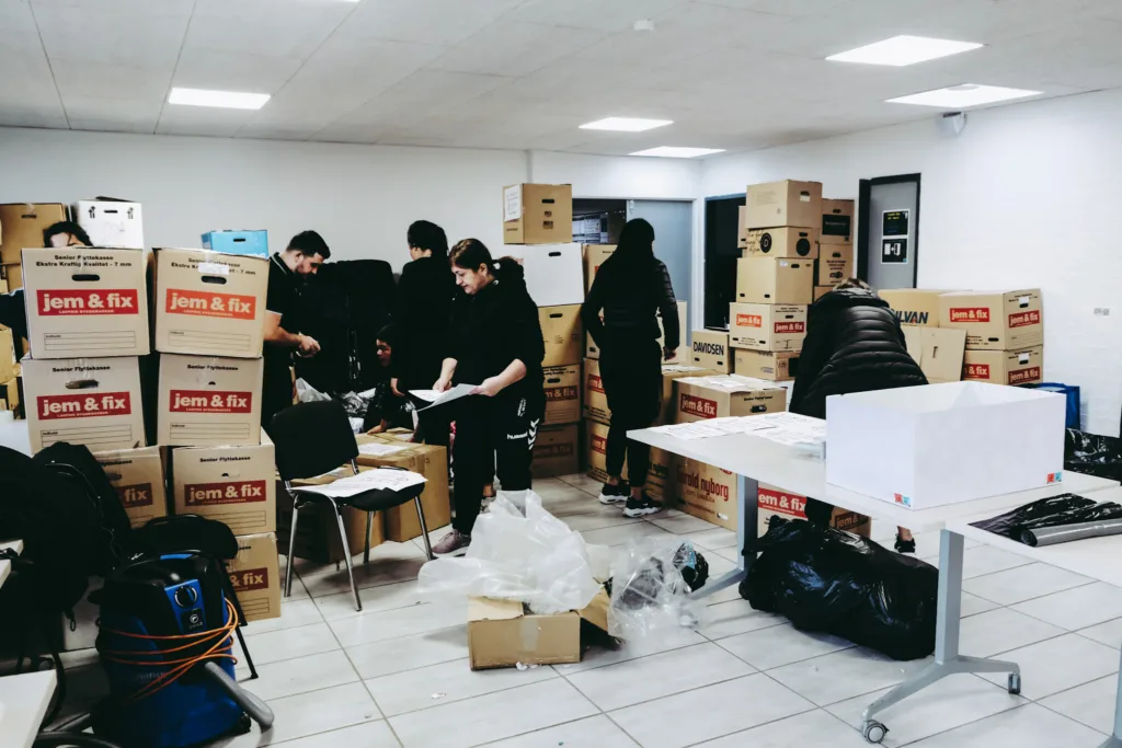 I flere af rummene hos foreningen var der fyldt med sække og kasser af tøj, sko og alt muligt andet, man kunne have brug for. Der var mange som hjalp til, og de var ved at sortere alt det indsamlede og pakke det ned, så de kan blive sendt afsted med en lastbil lørdag. I sådanne situationer allierer man sig med andre organisationer i udlandet, som hjælper til at få hjælpen frem.