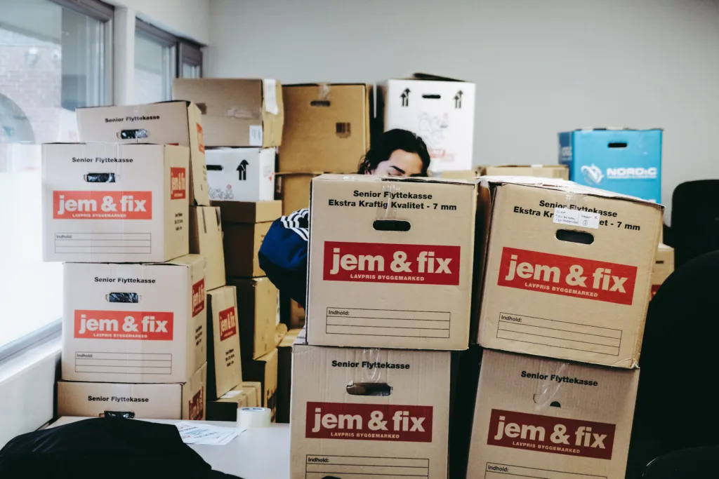 Tyrkisk Kulturforening Fredericia, pakkede løs fredag eftermiddag. Lørdag skulle de mange ting afsted til Tyrkiet og Syrien. Foto: AVISEN
