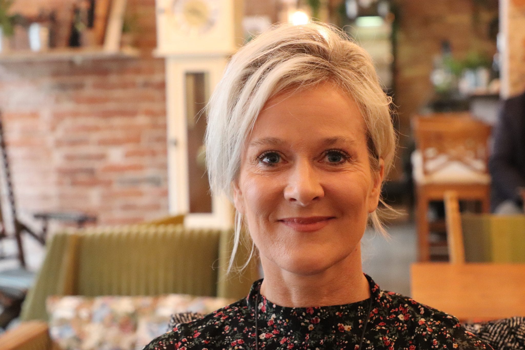 Der er en time til butikkerne åbner i bymidten og for engang skyld er det ikke kulden, man mødes af, men forårets brise, jeg når lige at sætte mig og åbne laptoppen op, inden Lone Ahrentoft Hansen træder ind ad døren