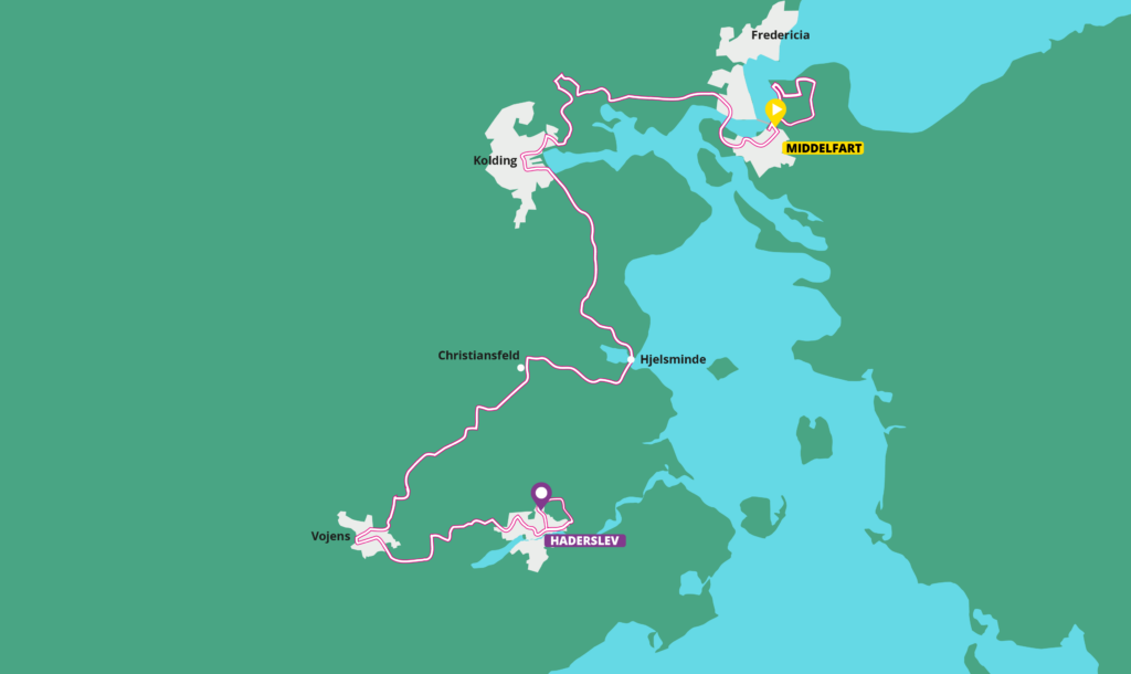 6. etape, søndag d. 27. august: Middelfart-Kolding-Haderslev