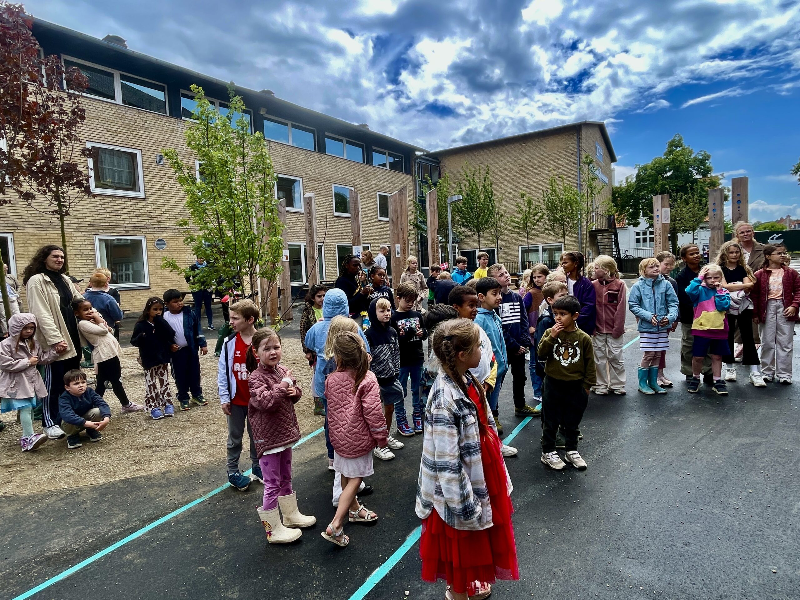 – Vi er nået i mål, og det har taget fire år. I denne periode har vores skolegård været delt ind i zoner, for at få det til at fungere. Dette projekt med skolegården er realiseret med midler fra blandt andet Nordea Fonden. Vi har fået faciliteter, der udfordrer vores sanser og inviterer til leg og læring. Børnene har allerede taget rammerne i brug for en måneds tid siden. Så vi er godt i gang. Både børn, voksne og skolen som helhed nyder godt af de nye rammer, hvor vi kan være sammen om at lære, forklarede Nissen.