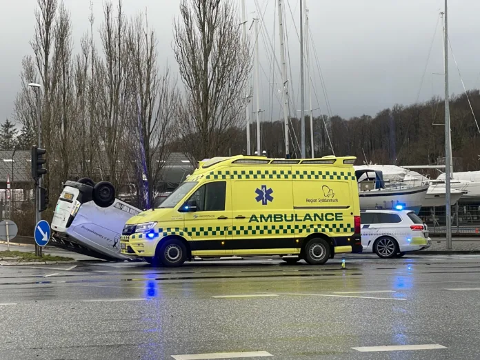 – 15.15 i går sigter politiet en 78-årig mand, der kom kørende i sin personbil. Manden kolliderer med en varebil, der triller rundt og lander på taget. I varebilen sidder en 40-årig mand. Det viser sig efterfølgende, at den 78-årig mand var påvirket af alkohol. Vi afventer svar på blodprøverne, men manden blev sigtet for spritkørsel i går, oplyser Finn Ellesgaard Nielsen fra Sydøstjyllands Politi onsdag morgen.