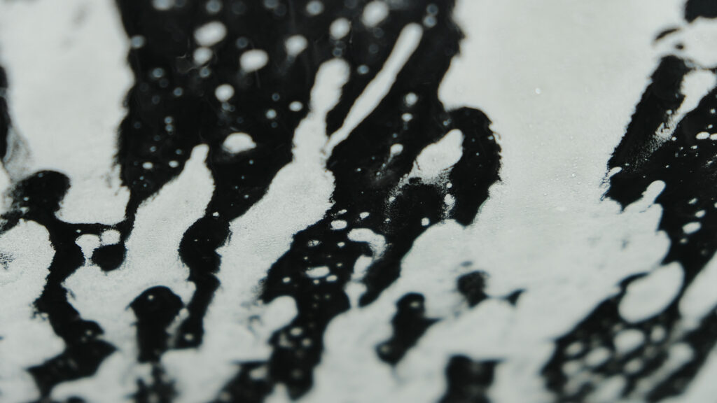 I vaskehallen er bilen nu dækket af lag af hvid sæbe, skumbørsterne bliver bragt i spil, hvirvlende og snurrende vasker de snavset af. Det er både lidt hypnotisk, men samtidig beroligende. Lyden er blød, næsten dæmpet, ikke den sædvanlige skurrende lyd, man nogle gange oplever.